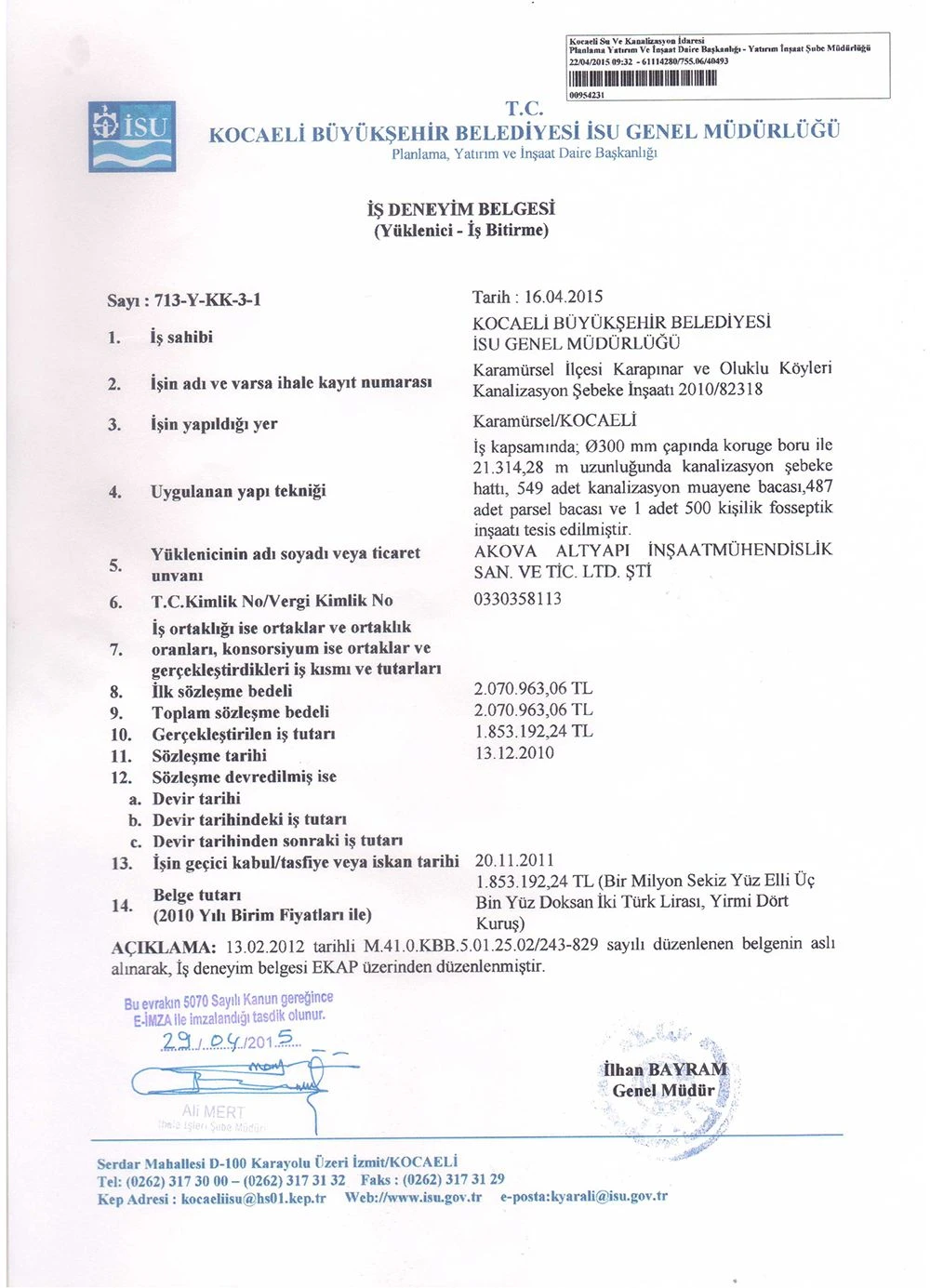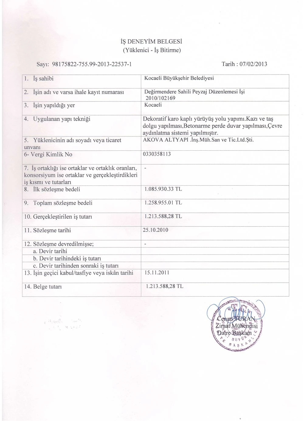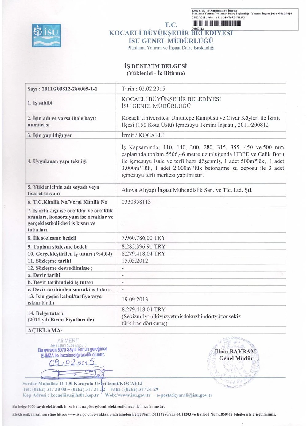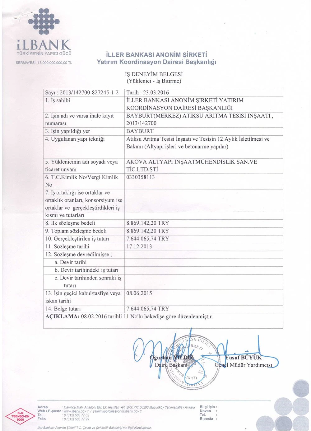 İş Bitirme Belgeleri   - Akova Altyapı