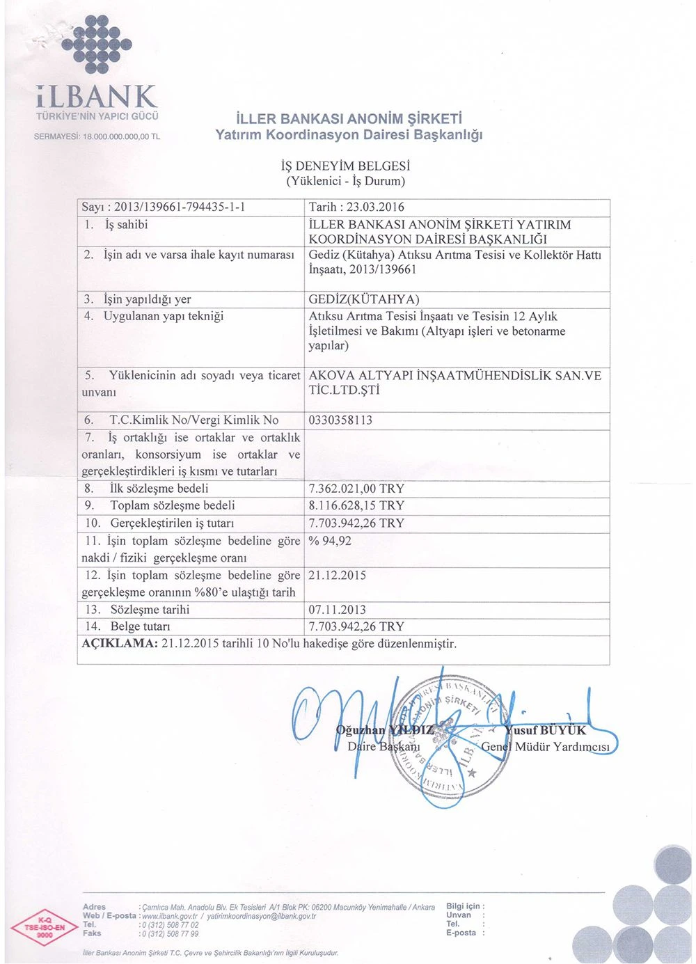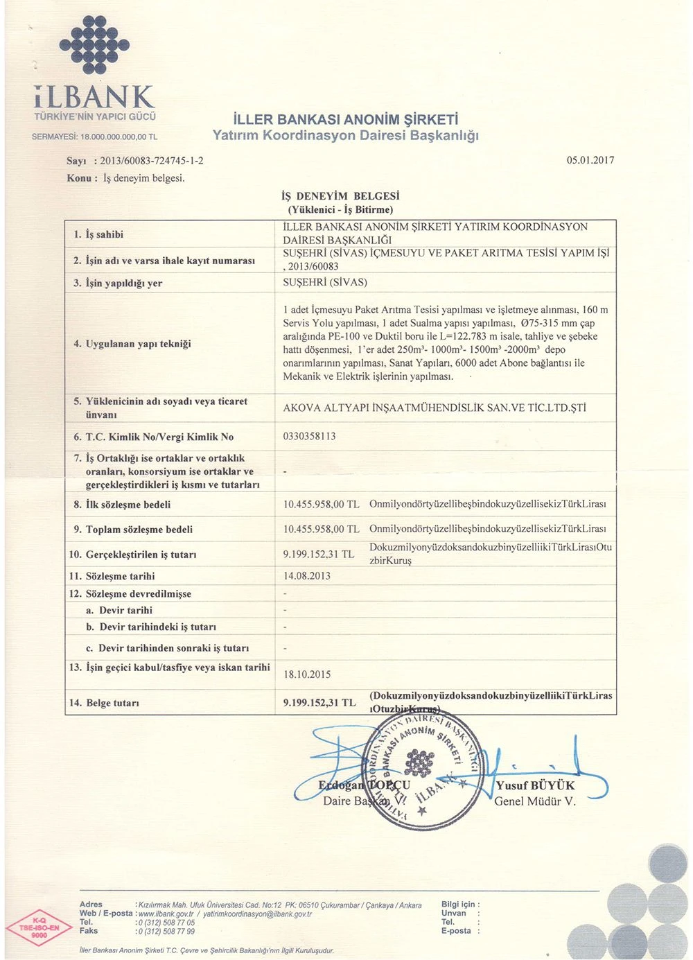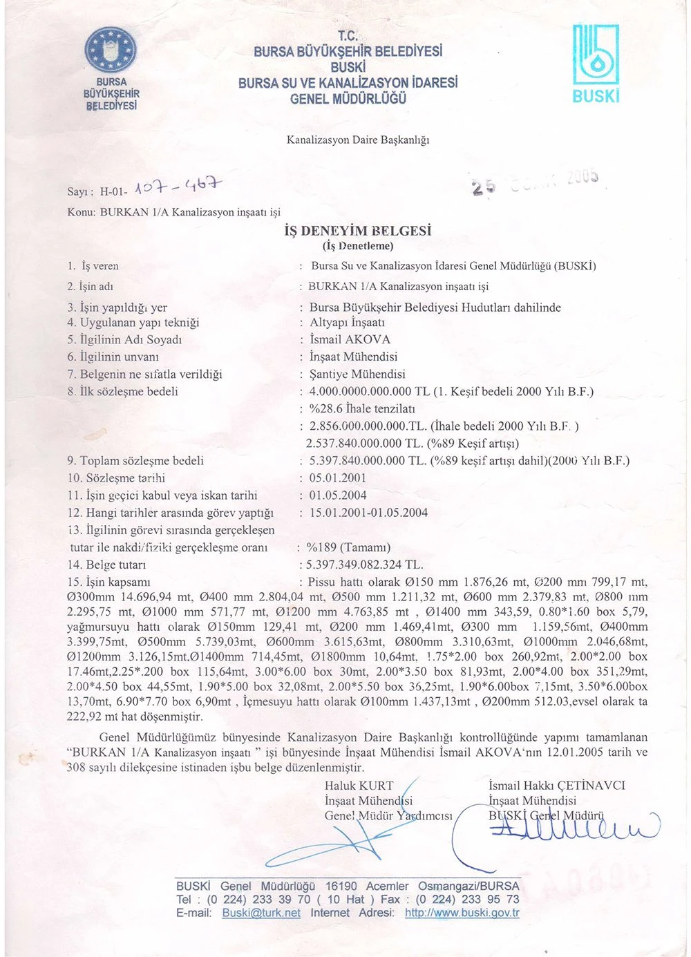 İş Bitirme Belgeleri   - Akova Altyapı