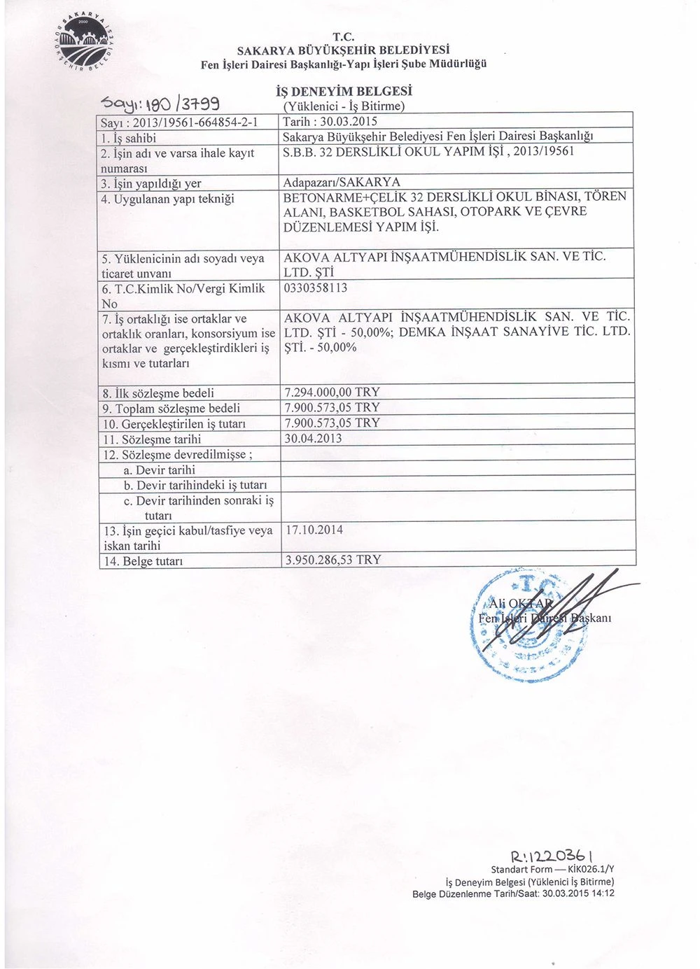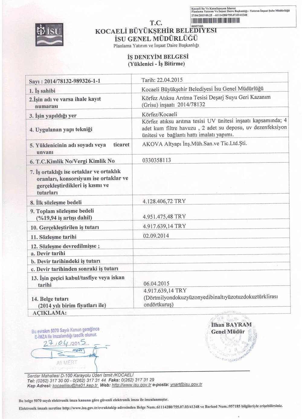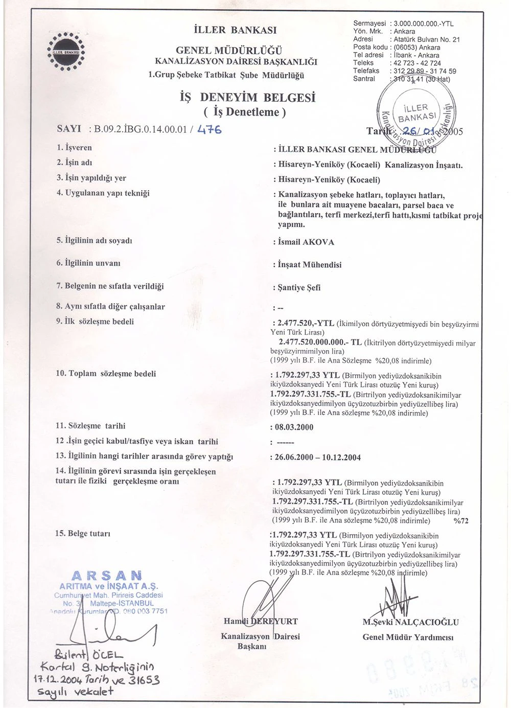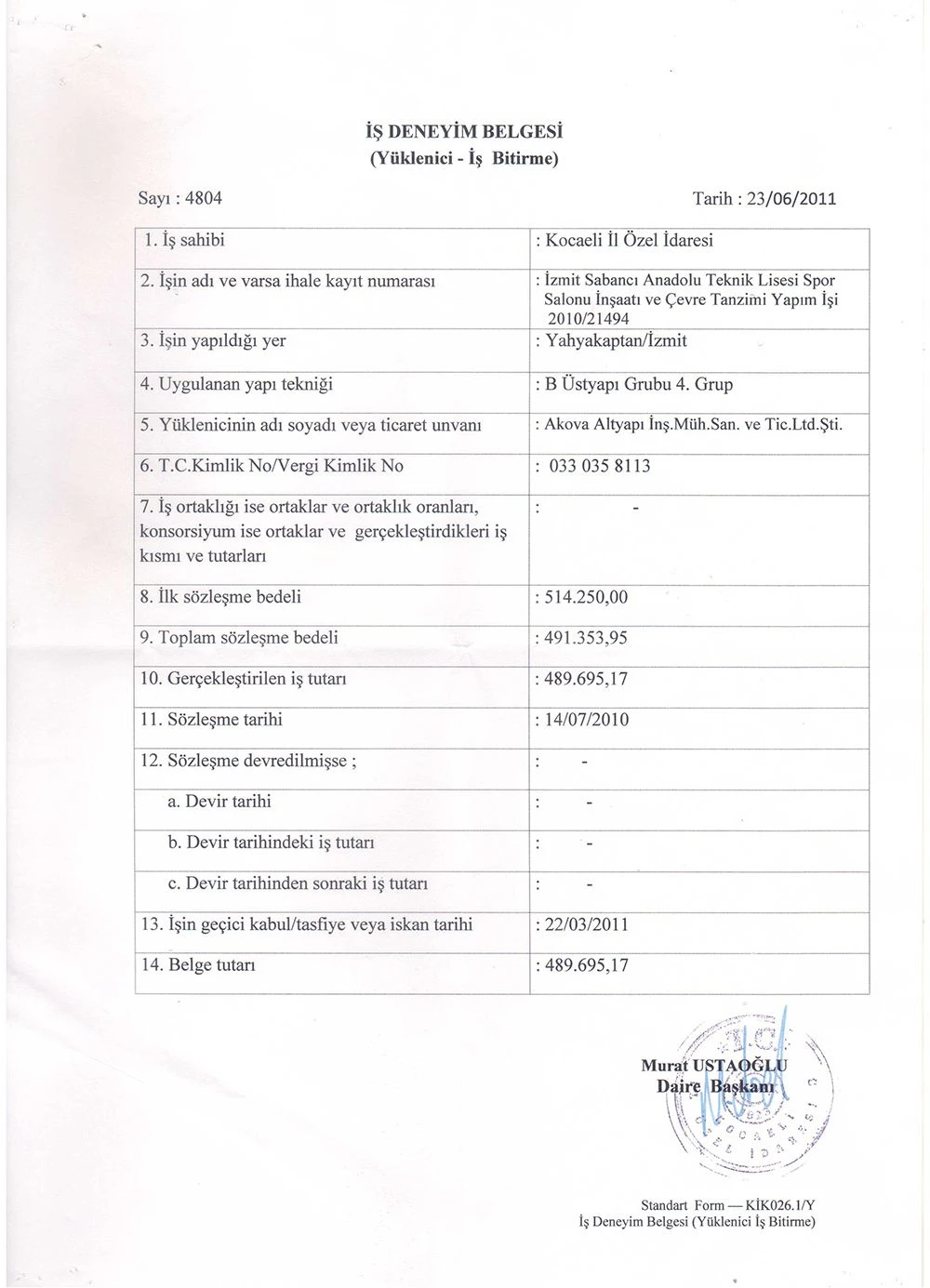İş Bitirme Belgeleri   - Akova Altyapı